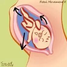 母子连心,宝宝这时也在为将出世做着准备:Ta会将下巴向身体收拢,缩起肩膀,卷缩着身体,像一个马上开跑的短跑运动健儿。Ta十分的聪明,会先测试一下妈妈的骨盆能不能容自己通过,宝贝们可不舍得弄痛他们最爱的妈妈。最初开始胎儿是面向侧面的,所以他们很快意识到不够位置通过,好吧,那就华丽丽地转个身吧,噔噔噔~就正式入盘了!